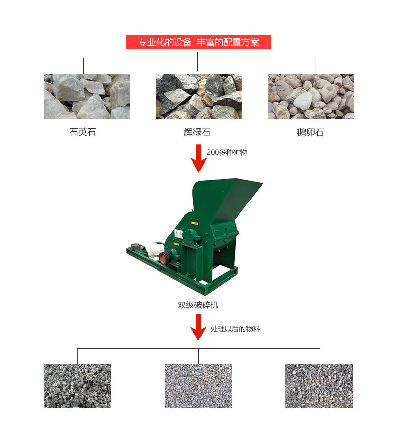 2.對(duì)于與煤矸石同等硬度的物料,比如:煤炭、原煤、爐渣、煤渣、頁巖、建筑垃圾、各類礦石、化工原料等,均可粉碎。
